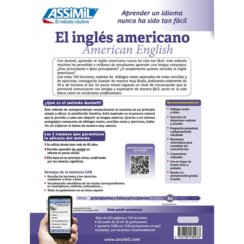 Imparare l’inglese americano scritto e parlato con il Metodo Assimil ti permetterà di parlare e comprendere senza sforzo i parlanti madrelingua o a livello internazionale, sia in ambito quotidiano che lavorativo.